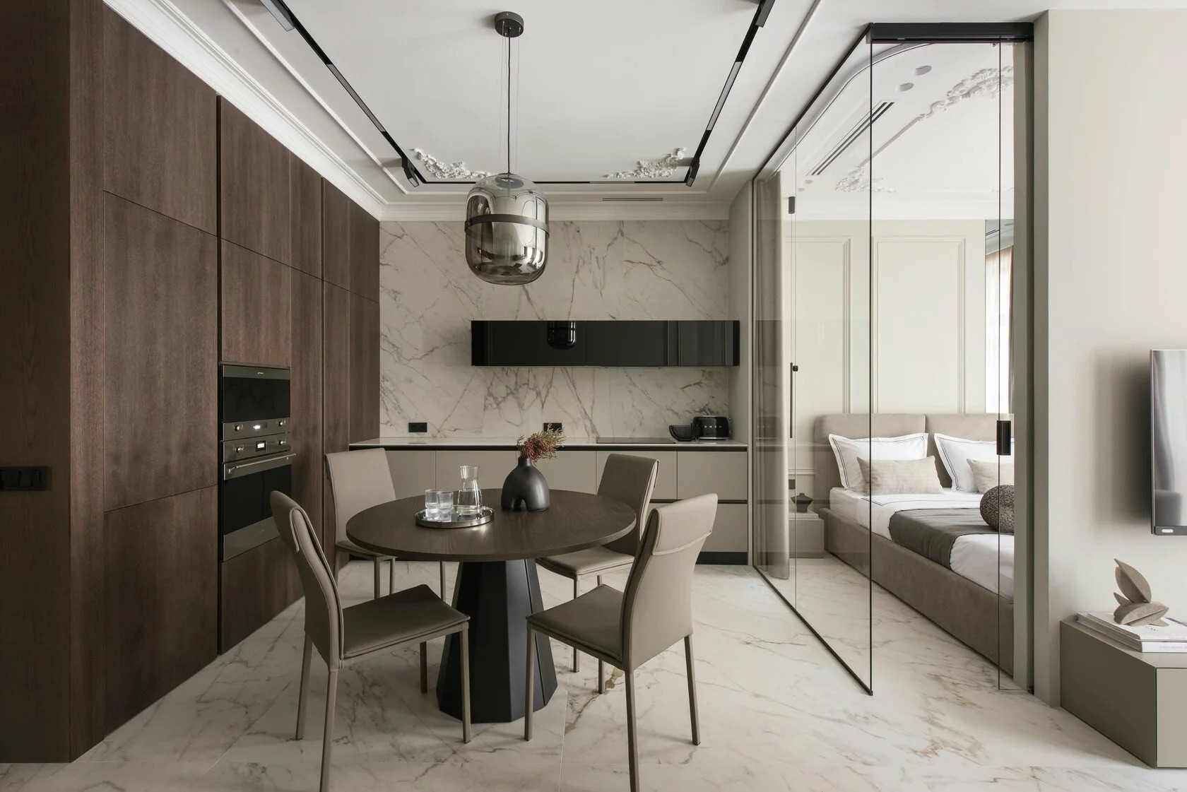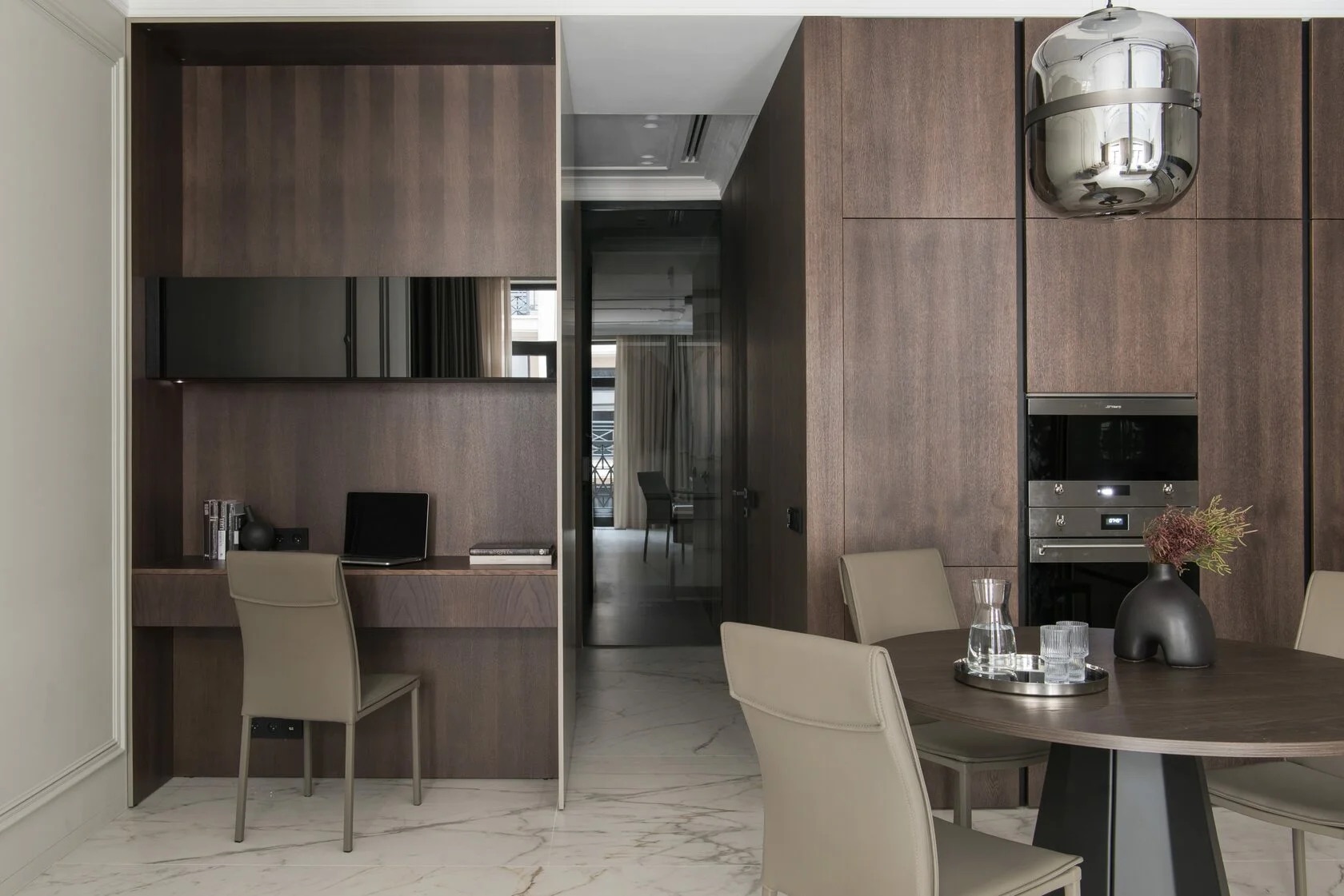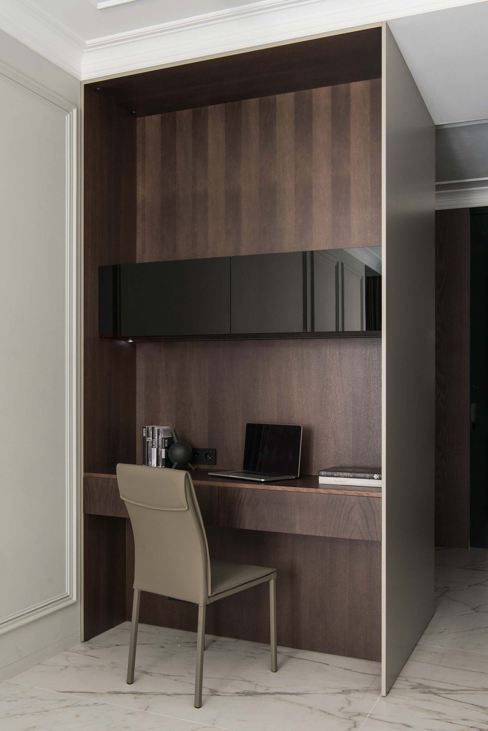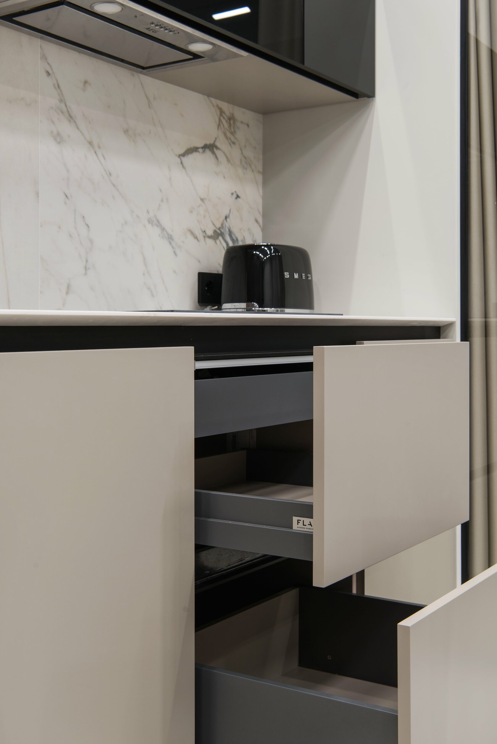 Проект реализован в 2022 г. В Москве. Апартаменты 52 м². Проект разработан совместно с дизайнером Светланой Мамаенко. Подробнее о проекте в публикации SALON. В реализации использованы фирменные отделки мебели FLAT.